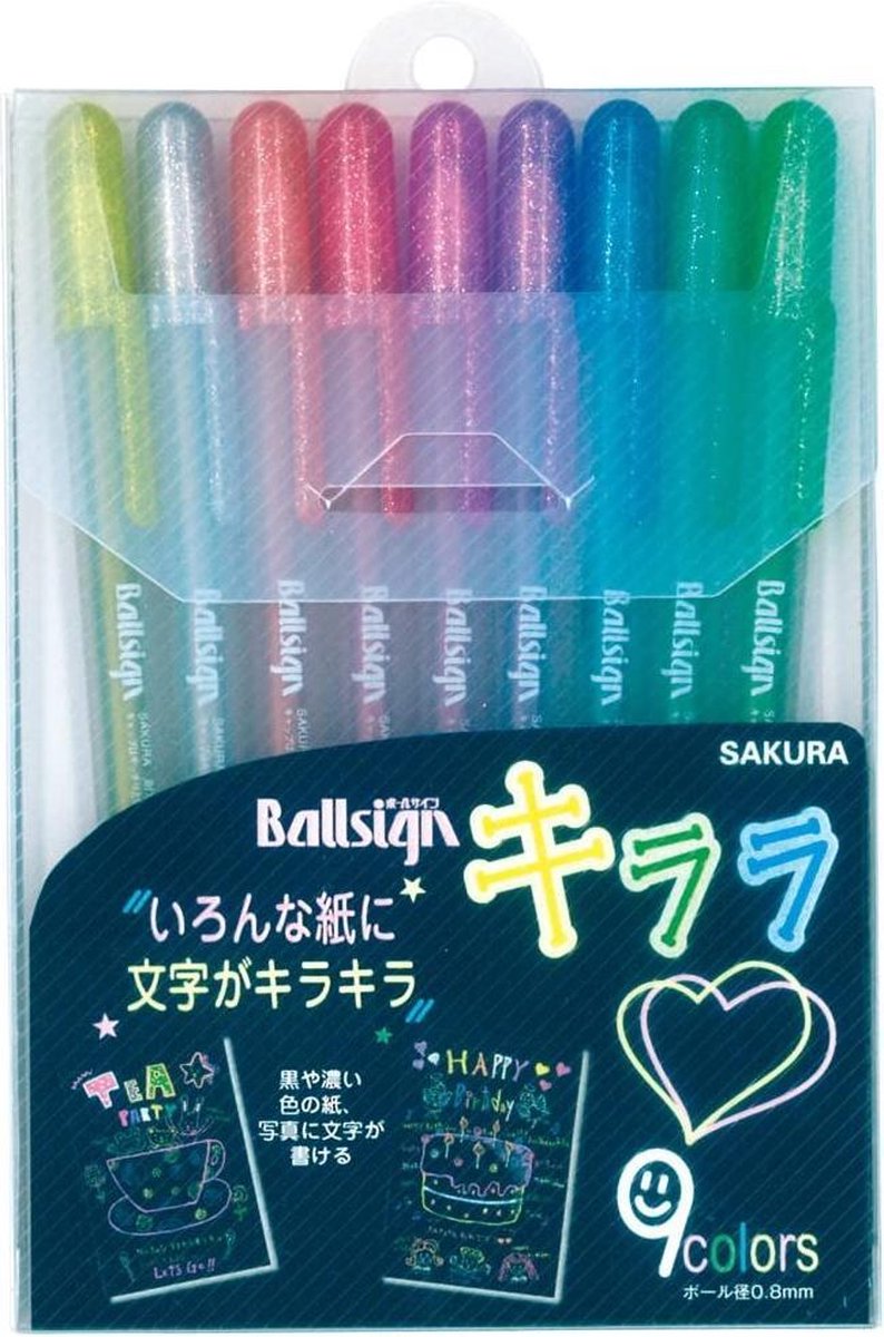 Sakura Gellyroll Kirara De Sakura Gellyroll kirara pennen schrijven met een prachtige subtiele metallic inkt met een lichte glitter. Het op water basis gepigmenteerde gel inkt schrijft makkelijk op lichte en donker papier maar ook foto's en gecoate papier. Deze set bevat 9 kleuren : Blauw, Emerald, Goud, Groen, Oranje, Roze, Paars, Rood, Zilver. Voor 15:00 besteld vandaag verzonden.