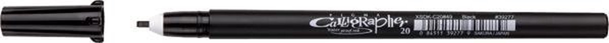 Pigma Calligrapher is een handige kalligrafiepen die op dezelfde manier gebruikt kan worden als een gewone fineliner. Geen opzetstukjes en geknoei met inkt. De diepzwarte inkt blijft jarenlang net zo zwart als de dag waarop je de inkt aangebracht hebt. Deze kalligrafiepen heeft een puntdikte van 2,0mm waarmee je medium kalligrafielijnen kan creëren. De puntdiktes 1,0mm en 3,0mm zijn ook verkrijgbaar. Pigma In 1982 ontdekte en patenteerde Sakura een unieke formule voor inkt die kwalitatief zo goed en chemisch complex is. dat deze sindsdien wereldwijd de kwaliteitsstandaard is geworden voor betrouwbare, permanente, archiveerbare inkt. Deze inkt, die gewaardeerd wordt om zijn kleurechtheid en resistentie tegen chemicaliën, kreeg de naam Pigma. Pigma inkt is verkrijgbaar in diverse kleuren en pensoorten, zoals Sakura Pigma Micron (fineliners in 8 lijndiktes), Sakura Pigma Brush (penseelstiften) en Sakura Pigma Graphic (stiften met kogel- en beitelvormige punten). Deze zijn allemaal