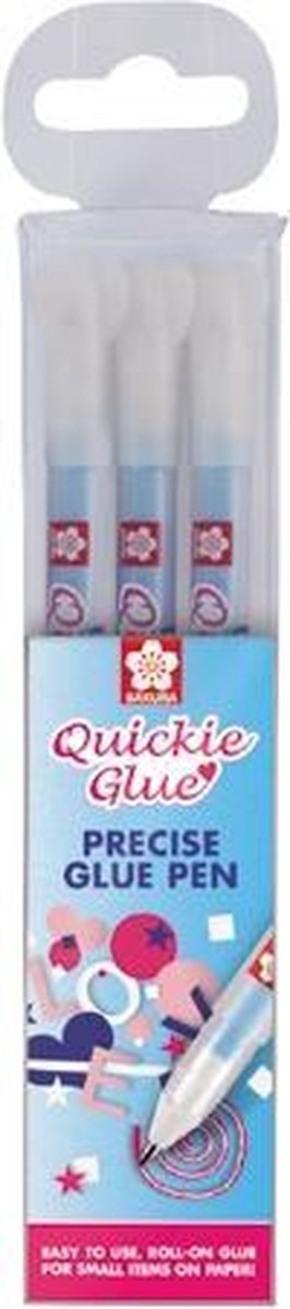 Een set met 3 handige Sakura Quickie Glue rollerpennen met lijm-inkt! Gedetailleerd lijm aanbrengen voor het maken van (wens)kaarten met glitters of om voorwerpen te versieren. De lijm wordt 100% volledig opgebruikt, pompen of schudden niet nodig!