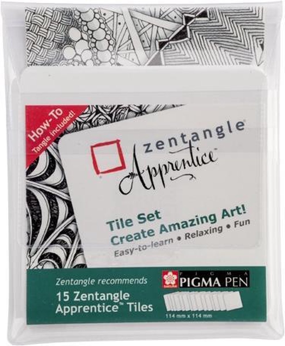 De Zentangle methode is er voor iedereen! Daarom is er Zentangle Apprentice: een ervaring voor kinderen en geliefd onder senioren. Deze Zentangle Zendala Tile Set bevat 15 ronde Zendala Tiles, perfect om nog meer zentangles te maken! De compacte afmeting van het papier maakt dat de tile gemakkelijk te draaien is tijdens het maken van een tangle (patroon), zodat je als tekenaar altijd vanuit de meest comfortabele tekenpositie je lijnen tekent. De Apprentice Tiles in deze set zijn een geweldige aanvulling op de Zentangle Apprentice Tool Set, die Pigma pennen bevatten. Inhoud: 15 Zentangle Apprentice® Tegels (114,3 x 114,3 mm) Uitleg over een eenvoudig te leren Tangle (patroon) De Zentangle-methode De Zentangle-methode is een eenvoudig te leren, ontspannende en superleuke manier om prachtige kunstwerkjes te maken door gestructureerde patronen te tekenen. Hoewel het eindresultaat van je kunstwerkje waanzinnig is en ogenschijnlijk complex lijkt, draait het bij de Zentangle-methode meer om