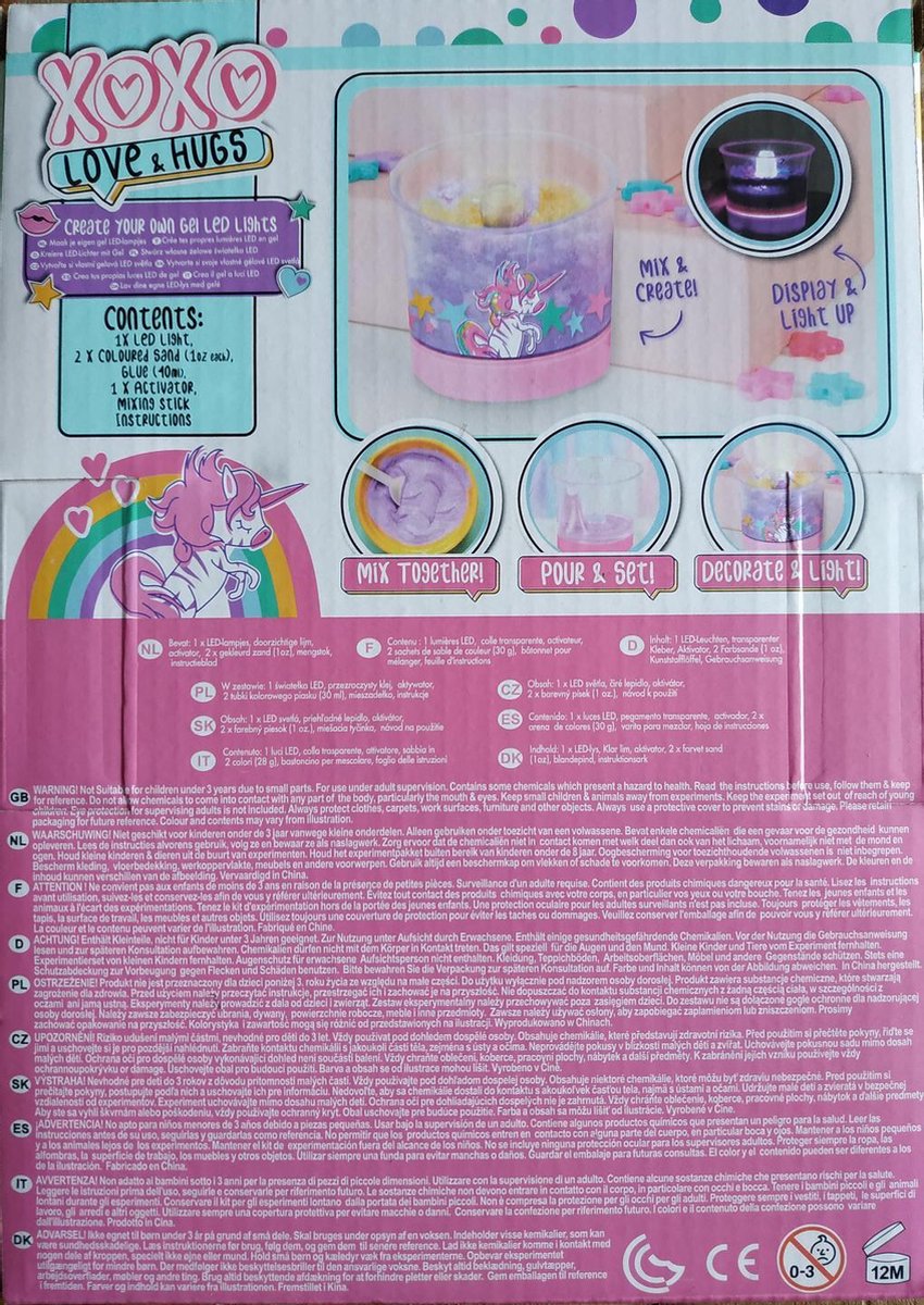 Met dit XOXO slijm LED-licht houders setje van Sambro kunnen kinderen lekker creatief bezig. De slijm wordt toegevoegd aan de LED-licht houder en deze kan versierd worden met gekleurd zand. • 1 led lampjes • Doorzichtige lijm • 2x Gekleurd zand • Mengstok • Geschikt voor kinderen vanaf 4 jaar