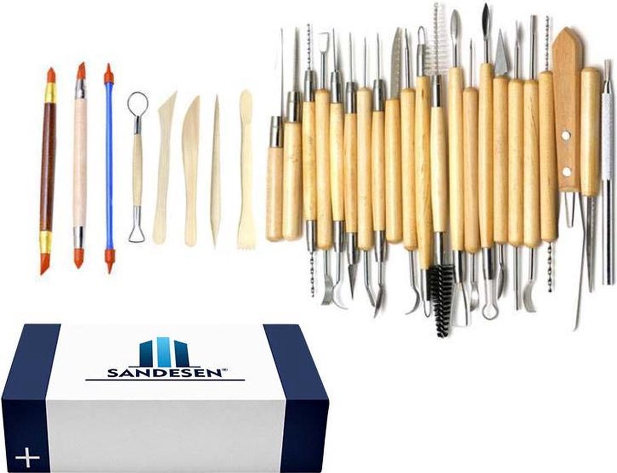 30 stuks in totaal: bevat de meeste gereedschappen voor boetseerklei die je nodig hebt, ideaal voor het snijden, vormen, modelleren, schrapen, borstelen, gladmaken enzovoort. Dubbelzijdig ontwerp voor een verscheidenheid aan vormen en toepassingen, waardoor uw werk flexibeler wordt. Glad, lichtgewicht en comfortabel om vast te houden - duurzame constructie van hout en roestvrij staal, hoge kwaliteit. gemakkelijk te gebruiken, schoon te maken en op te bergen