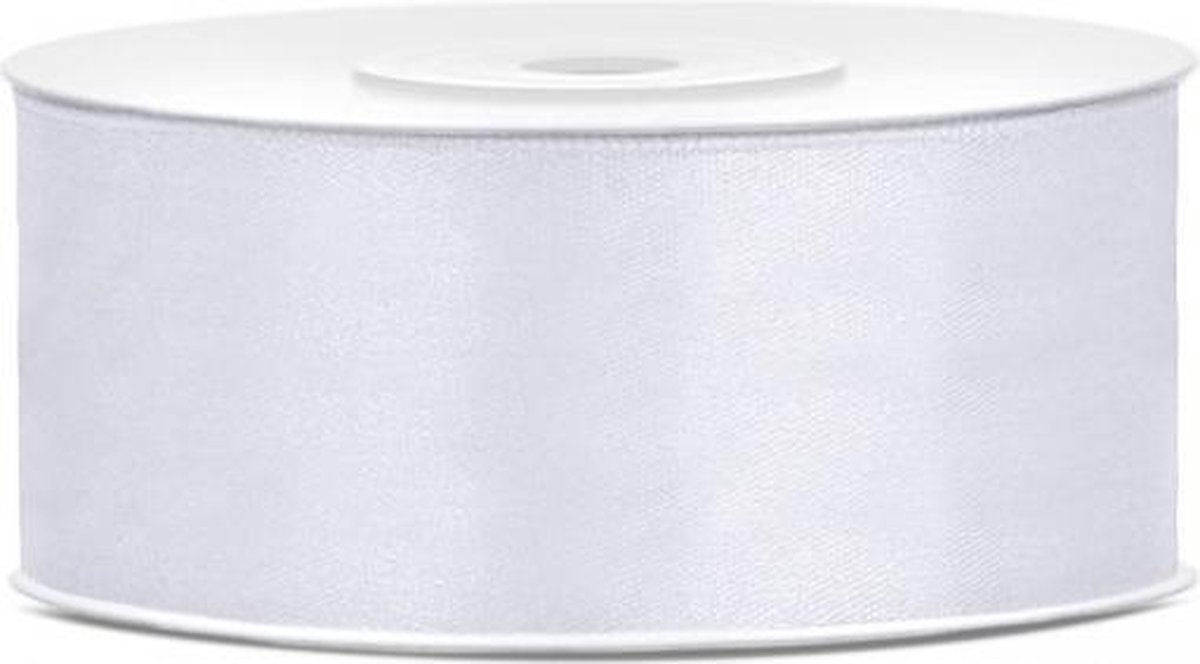 Satijn sierlint wit 25 mm. Wit lint op een rol van 25 mm breed en 25 meter lang. Handig voor o.a. bruiloft decoraties.