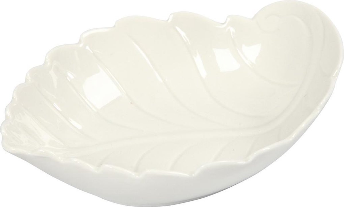 Schaal gemaakt van geglazuurd keramiek in de vorm van een blad.Schaal gemaakt van geglazuurd keramiek in de vorm van een blad.