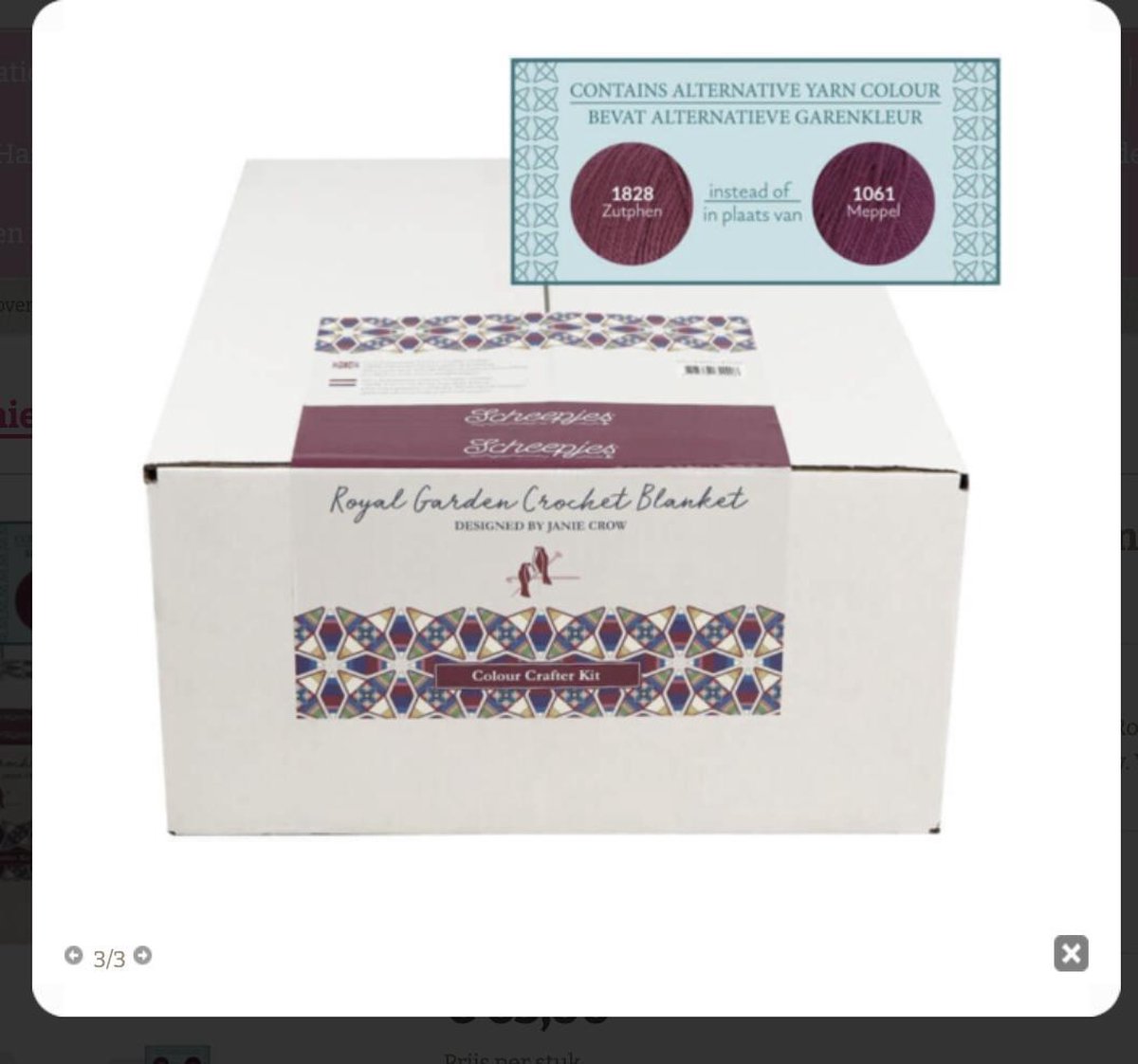 Let op: bij deze nieuwe voorraad Colour Crafter Kits is de hoofdkleur 1061 Meppel vervangen door vergelijkbare kleur 1828 Zutphen! Met trots presenteren wij onze twee nieuwste Scheepjes Kits: de Royal Garden Blanket, ontworpen en samengesteld door Jane Crowfoot - ook wel bekend als Janie Crow. Voor dit haakpatroon zijn exclusieve Scheepjes Kits samengesteld, waarmee de deken te maken is in onze Colour Crafter of Stone Washed & River Washed garens. De Royal Garden Blanket is een eerbetoon aan een magische plek in Mysore. De schitterende terracotta tegels op de vloeren van een koffiehuis in combinatie met de als lappendeken opgebouwde voortuin van het hotel dienden voor Jane als grote inspiratiebron. De inspiratie die de tuin vol bloembedden en tegels bij haar oproept, is op een geometrische manier samengebracht tot een fantastische deken die in elk interieur de show steelt. Jane heeft exclusief voor Scheepjes zorgvuldig twee kleurencombinaties samengesteld uit ons omvangrijke Colour