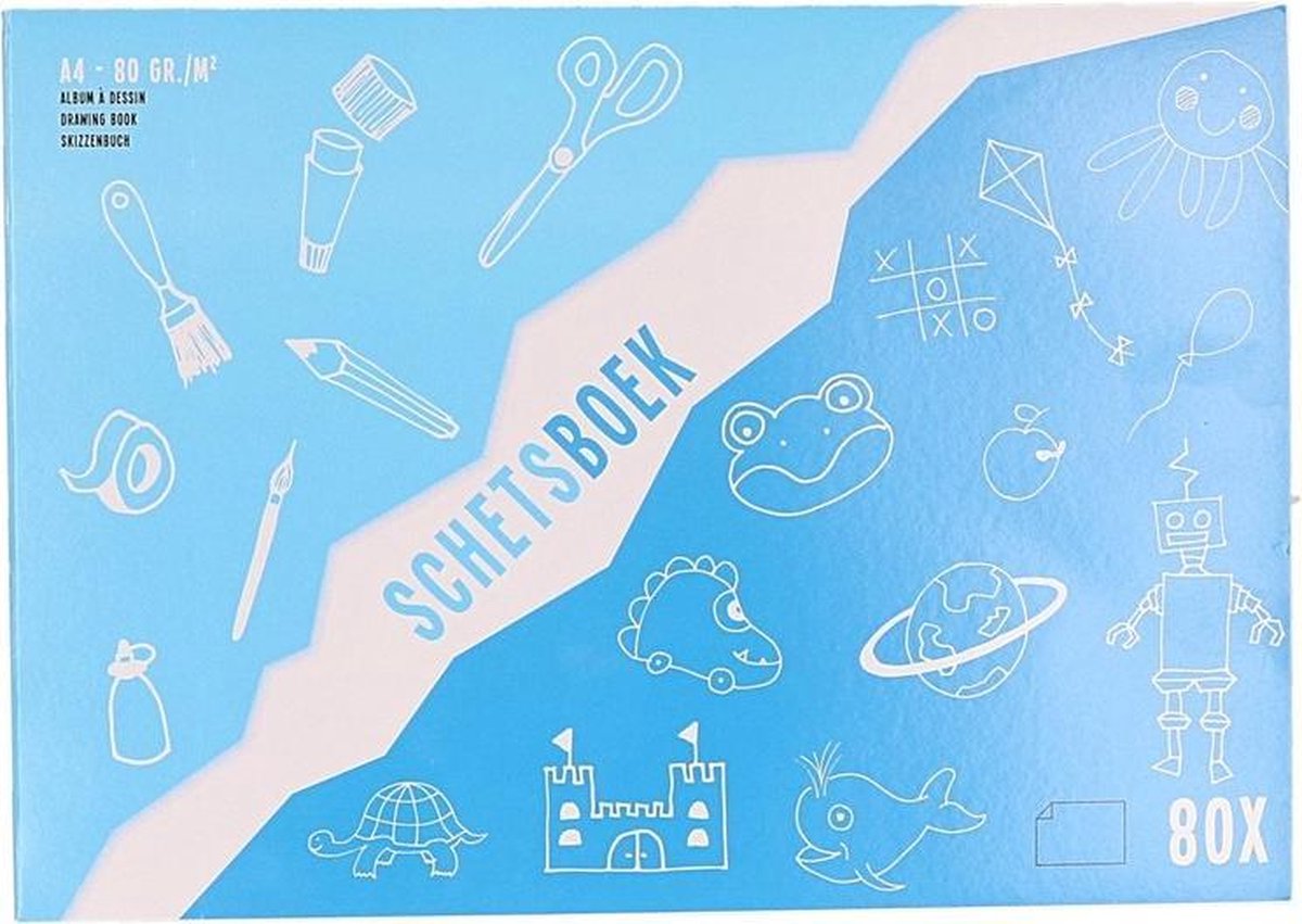 Schetsboek/tekenboek met 80 vellen blanco papier. Formaat: A4 papier (21 x 29,7 cm). De vellen zijn makkelijk uit te scheuren doordat de vellen gelijmd zijn. Kinderspeelgoed hobby tekenpapier/tekenvellen tekenboek.