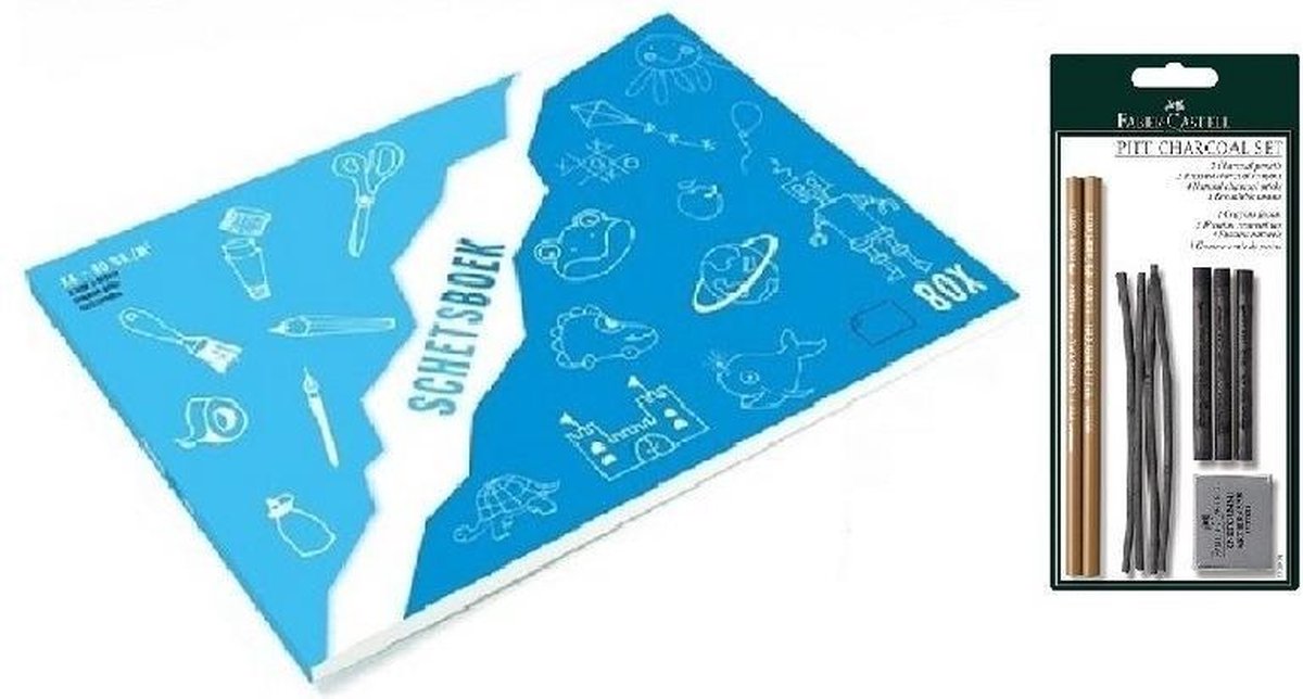 Schetsboek/tekenboek A4 formaat inclusief houtskool pakket. Dit pakket bevat: een schetsboek met 80 vellen wit A4 papier en een 10-delige houtskool tekenset. Formaat schetsboek: A4 papier (21 x 29,7 cm). De vellen zijn makkelijk uit te scheuren doordat de vellen gelijmd zijn. bestaande uit 1x Tekenen met houtskool set , 1x Schetsboek/tekenboek A4 formaat 80 vellen