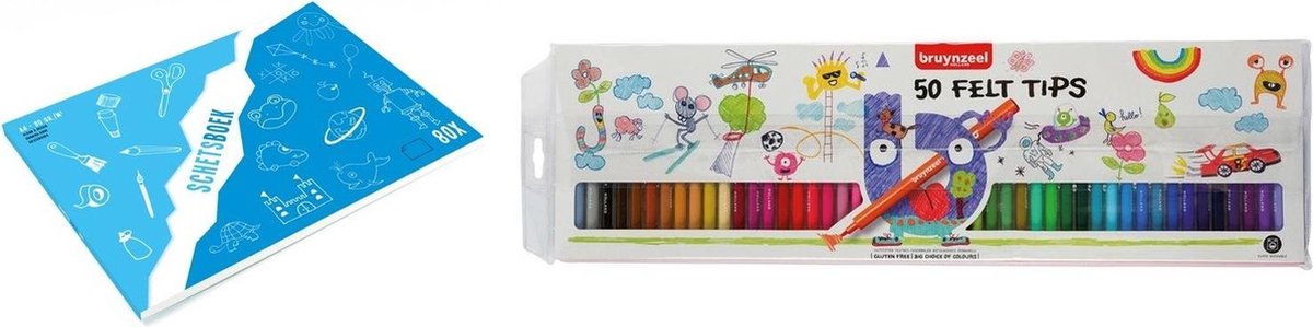 Schetsboek/tekenboek met 80 vellen blanco papier en 50 viltstiften. Formaat: A4 papier (21 x 29,7 cm). De vellen zijn makkelijk uit te scheuren doordat de vellen gelijmd zijn. Kinderspeelgoed hobby tekenpapier/tekenvellen tekenboek.