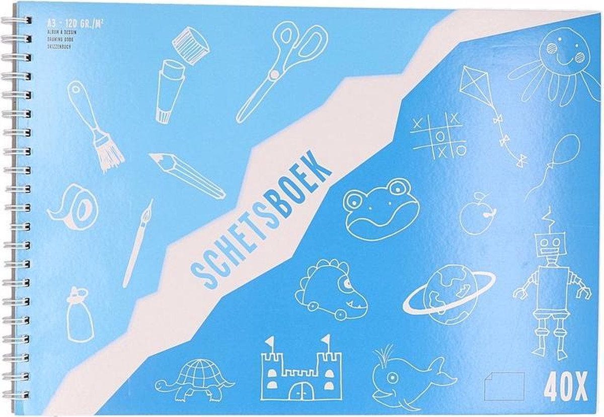 Een teken/kleur/hobbypakket met een schetsboek/tekenboek wit papier A3 formaat en 24 kleurpotloden/tekenpotloden. Het schetsboek bevat 40 witte vellen. Teken/hobby/knutselmateriaal tekenen/kleuren pakket met potloden en schetsboeken, voor kinderen en volwassenen. bestaande uit 1x Schetsboek/tekenboek A3 formaat 40 vellen, 1x 24x Bruynzeel kleurpotloden voor kinderen