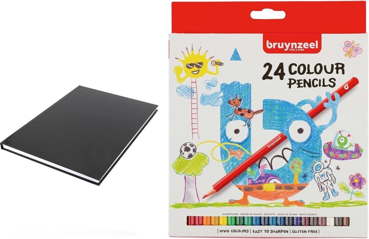 Schetsboek/tekenboek met 80 vellen blanco papier en harde kaft en 24 kleurpotloden. Formaat: A4 papier (29,7 x 21 cm). Papierdikte: 100 grams papier. De vellen zijn makkelijk uit te scheuren doordat de vellen gelijmd zijn. Hobby tekenpapier/tekenvellen tekenboek.
