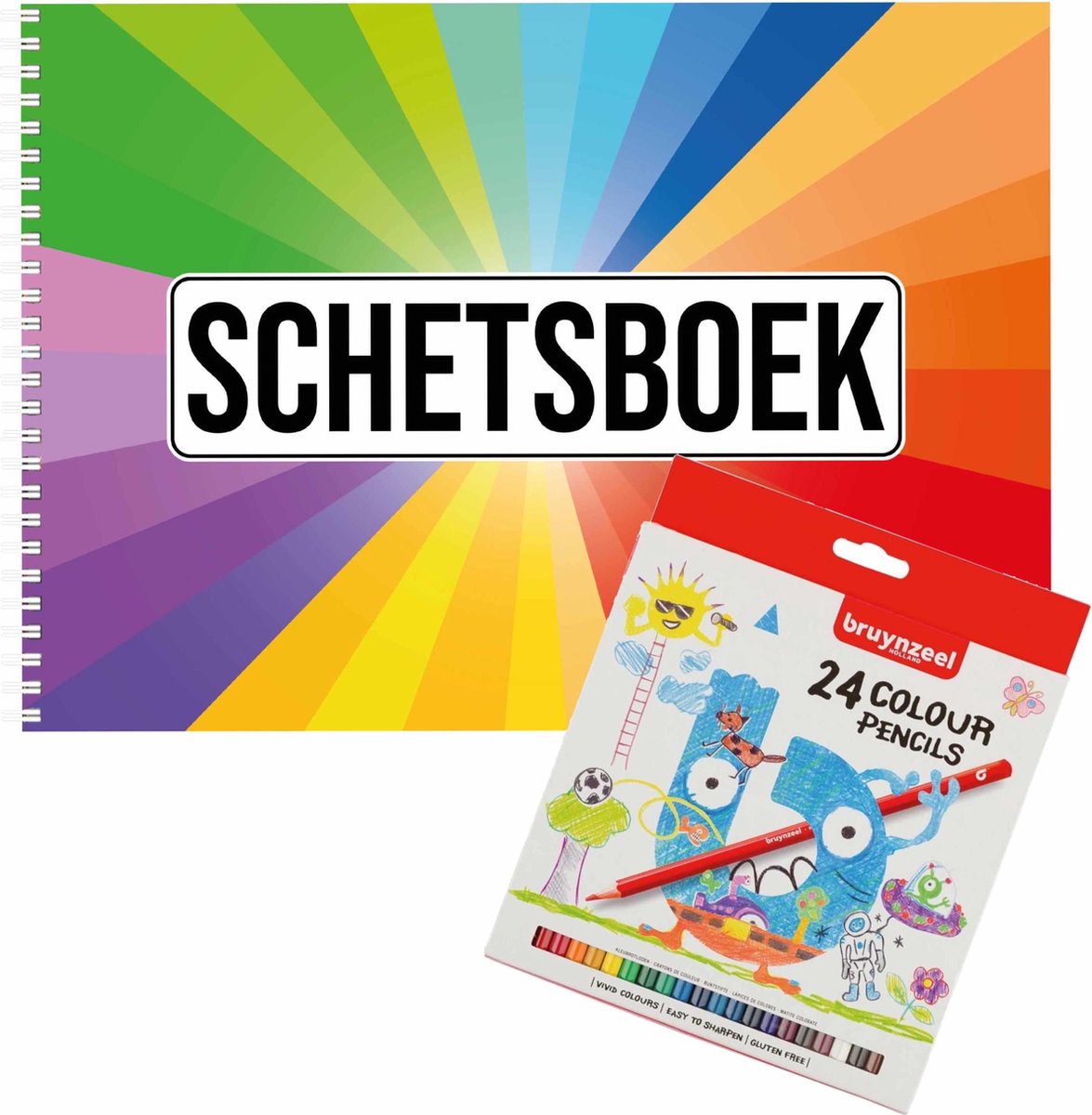 Schetsboek Kleurenwaaier thema in A4 formaat met 50 paginas en 24 Stabilo kleurpotloden. Kleurenwaaier thema schetsboek/ tekenboek/ kleurboek/ schetsblok wit papier A4. Mooi schetsboek met stevig/ plastic voorblad met een mooie bedrukking. Het A4 schetsblok bevat 50 vellen wit 80 grams papier. Dit schetsboek voor volwassenen of kinderen houdt al uw tekeningen/ schetsen bij elkaar door een witte ringband. Kleuren creatief speelgoed voor kinderen. bestaande uit 1x 24x Bruynzeel kleurpotloden voor kinderen, 1x A4 kleuren waaier schetsboek/ tekenboek/ kleurboek/ schetsblok wit papier