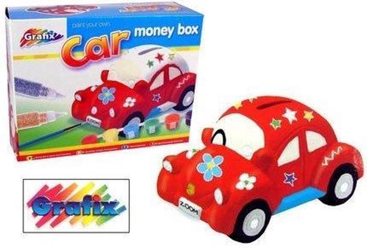 Een spaarpot in de vorm van een kever die je zelf kunt verven! Inhoud: 1 auto van gips, 6 kleuren verf, 1 penseel en 2 tubes glitter.