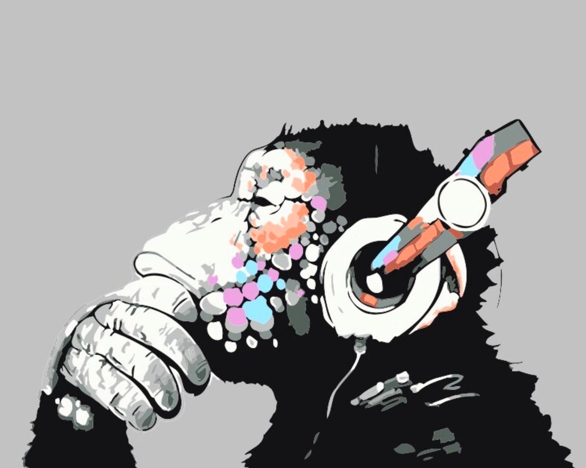 Schilderen op Nummer – Aap Abstract met Koptelefoon - 40x50cm – Schilderen op Nummer Kinderen - Schilderen op Nummer Volwassenen - Compleet Pakket - Canvas Schilderen - Paint on Number - Oil Painting - Gooda
