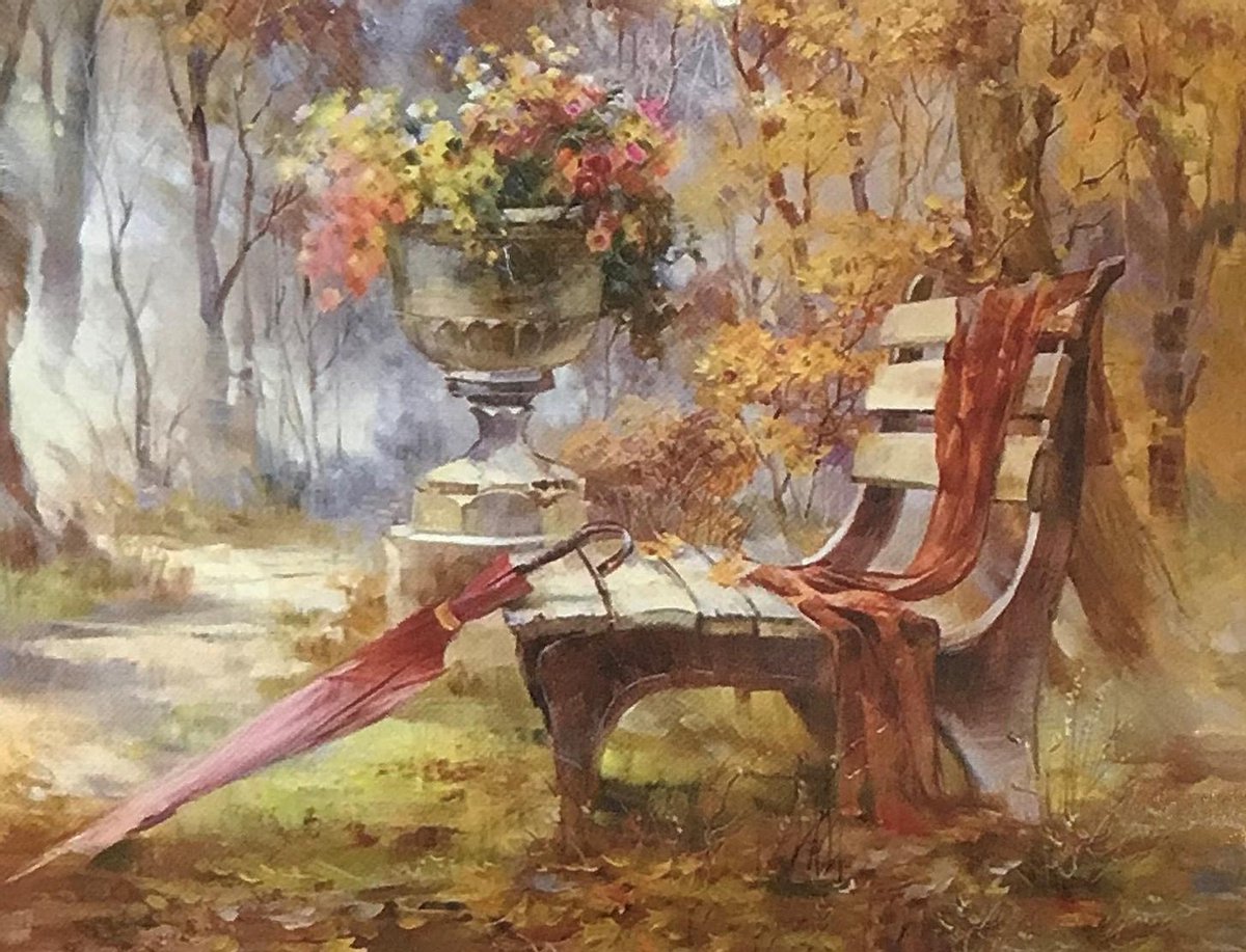 Schilderen op nummer bankje in het bos 40x50 zonder frame