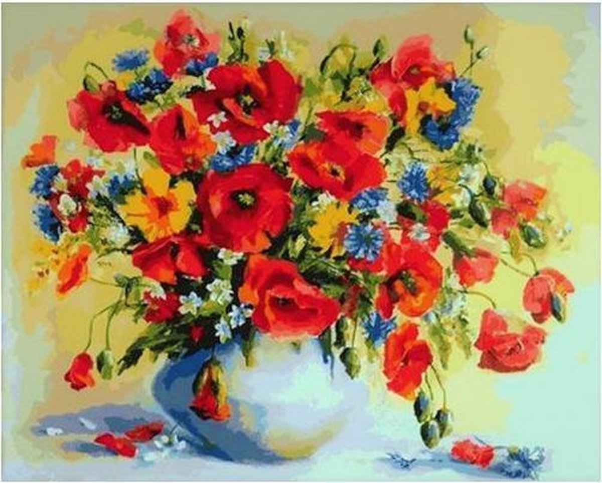 Schilderen op nummer is dé manier om even rustig te ontspannen. Met dit schildersdoek van kleurrijke Bloemen schilder je een ontzettend leuk stuk dat je bijvoorbeeld aan de muur kunt hangen. Moeilijkheidsgraad: 3/5. Zo werkt het Strijk eventueel de achterkant van het canvasdoek op een lage stand. Leg een theedoek ertussen voor extra bescherming. Elk vakje op het doek is genummerd. Elk nummer komt overeen met een nummer op de verfpotjes. Kies een nummer waarmee je wilt beginnen. Schilder de vakjes één voor één met de juiste kleur. Zodra je klaar bent (dan kan even duren) kun je het doek inlijsten of opspannen aan een houten frame en aan de muur hangen! Er is geen specifieke volgorde die je moet volgen om deze tekening af te kunnen maken. Dus wees creatief! Zet vooral je favoriete muziek aan en pak een kop thee/bakje koffie. Verpakkingsinhoud - schilderen op nummer Bloemen Instructies Een set met 3 kwasten Genummerd canvasdoek Genummerde potjes acrylverf Bestel het schilderen op