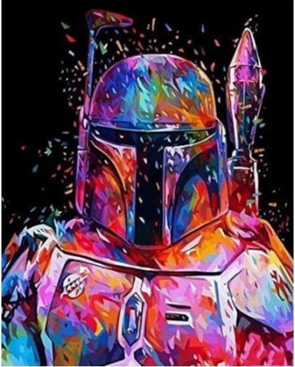 Schilderen op nummer is dé manier om even rustig te ontspannen. Met dit schildersdoek van Bobba Fett (Star Wars) schilder je een ontzettend leuk stuk dat je bijvoorbeeld aan de muur kunt hangen. Moeilijkheidsgraad: 3/5. Zo werkt het Strijk eventueel de achterkant van het canvasdoek op een lage stand. Leg een theedoek ertussen voor extra bescherming. Elk vakje op het doek is genummerd. Elk nummer komt overeen met een nummer op de verfpotjes. Kies een nummer waarmee je wilt beginnen. Schilder de vakjes één voor één met de juiste kleur. Zodra je klaar bent (dan kan even duren) kun je het doek inlijsten of opspannen aan een houten frame en aan de muur hangen! Er is geen specifieke volgorde die je moet volgen om deze tekening af te kunnen maken. Dus wees creatief! Zet vooral je favoriete muziek aan en pak een kop thee/bakje koffie. Verpakkingsinhoud - schilderen op nummer Bobba Fett Star Wars Instructies Een set met 3 kwasten Genummerd canvasdoek Genummerde potjes acrylverf Bestel