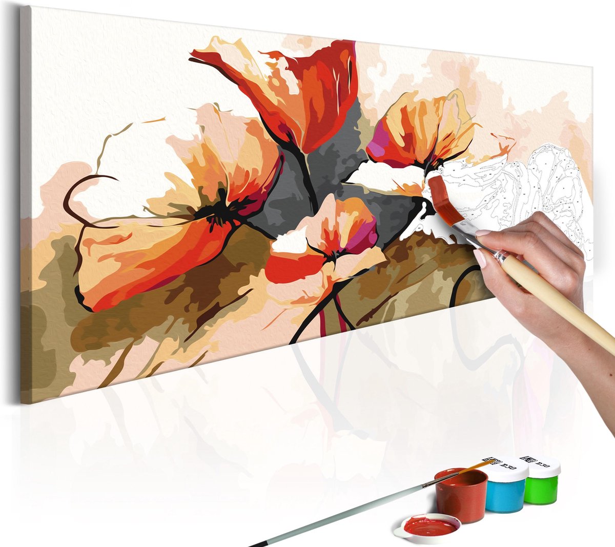 Ontwaak uw creativiteit Wilt u creatief ontspannen? Op zoek naar een origineel avontuur, waar u ook uw dierbaren kunt uitnodigen? Tegelijkertijd wordt u wakker van uw creativiteit en voelt u zich een echte kunstenaar. Niets is makkelijker ! Ontdek de meest originele hobby van dit jaar - schilderen op nummers . Een kleurrijke schilderij kit door nummers Flowers - Delicate Poppies is een ongebruikelijk idee voor het besteden van vrije tijd. Schilderij kit door nummers Flowers - Delicate Poppies is een activiteit voor mensen van alle leeftijden. Perfect voor amateur schilders! Dit schilderij zal perfect zijn als wandversiering. We presenteren een complete schilderkit voor volwassenen en ambitieuze kinderen ouder dan 12 jaar. De set bevat: Schemapatroonmet gekleurde velden - om uw kinderen te helpen schilderen 2 borstels met verschillende borsteldiktes Een set acrylverf in containers, speciaal geselecteerd voor het door u gekozen patroon. Diagram patroon met gekleurde velden - om u te