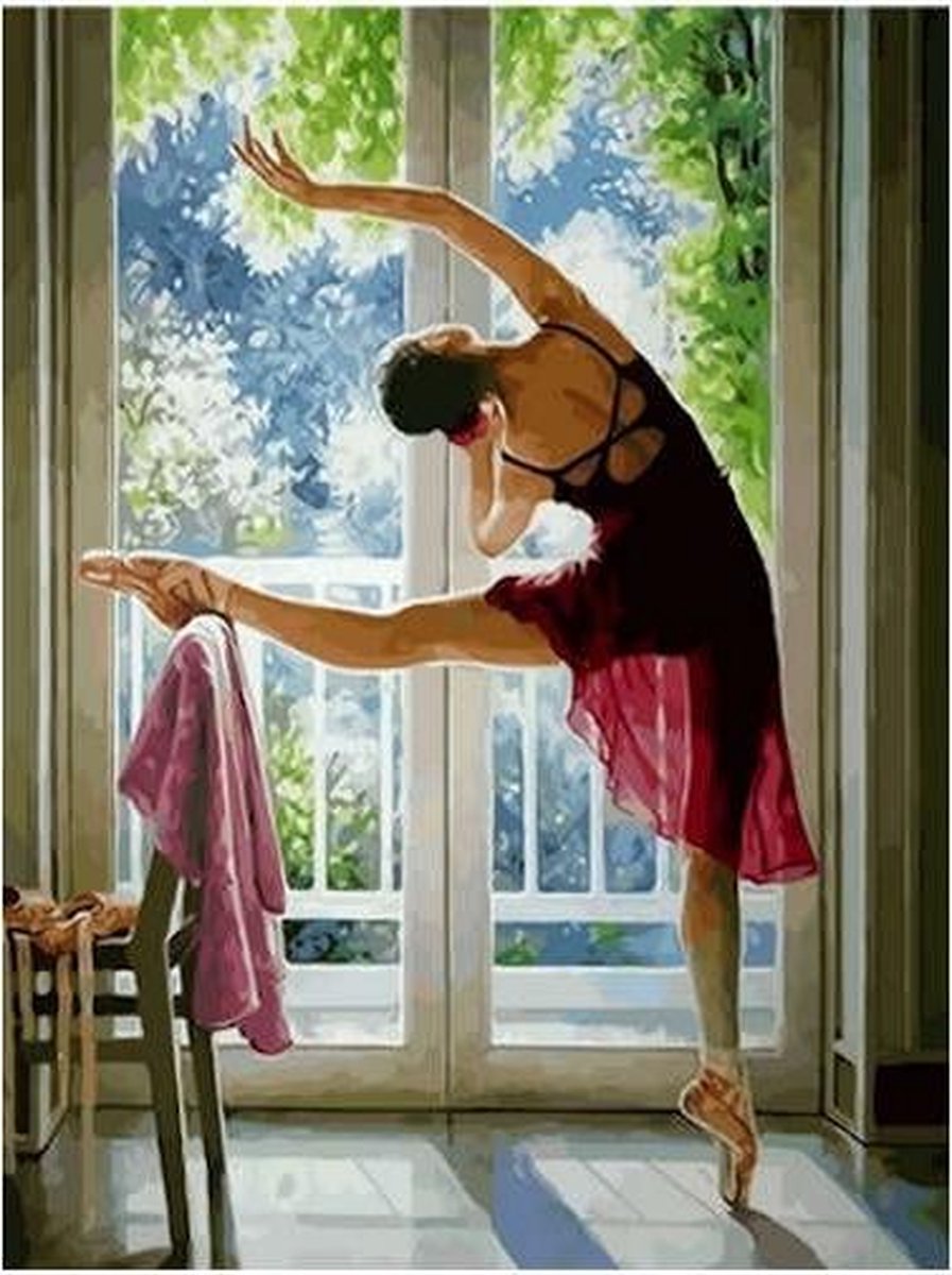 Schilderen op nummer is dé manier om even rustig te ontspannen. Met dit canvasdoek van een Elegante Ballerina schilder je een ontzettend leuk stuk dat je bijvoorbeeld aan de muur kunt hangen. Zo werkt het Strijk eerst de achterkant van het canvasdoek op een lage stand. Leg een theedoek ertussen voor extra bescherming. Elk vakje op het doek is genummerd. Elk nummer komt overeen met een nummer op de verfpotjes. Kies een nummer waarmee je wilt beginnen. Schilder de vakjes één voor één met de juiste kleur. Zodra je klaar bent (dan kan even duren) kun je het doek inlijsten of opspannen aan een houten frame en aan de muur hangen! Er is geen specifieke volgorde die je moet volgen om deze tekening af te kunnen maken. Dus wees creatief! Zet vooral je favoriete muziek aan en pak een kop thee/bakje koffie. Verpakkingsinhoud Instructies Een set met kwasten Genummerd canvasdoek Genummerde potjes acrylverf Let op: frame niet inbegrepen.