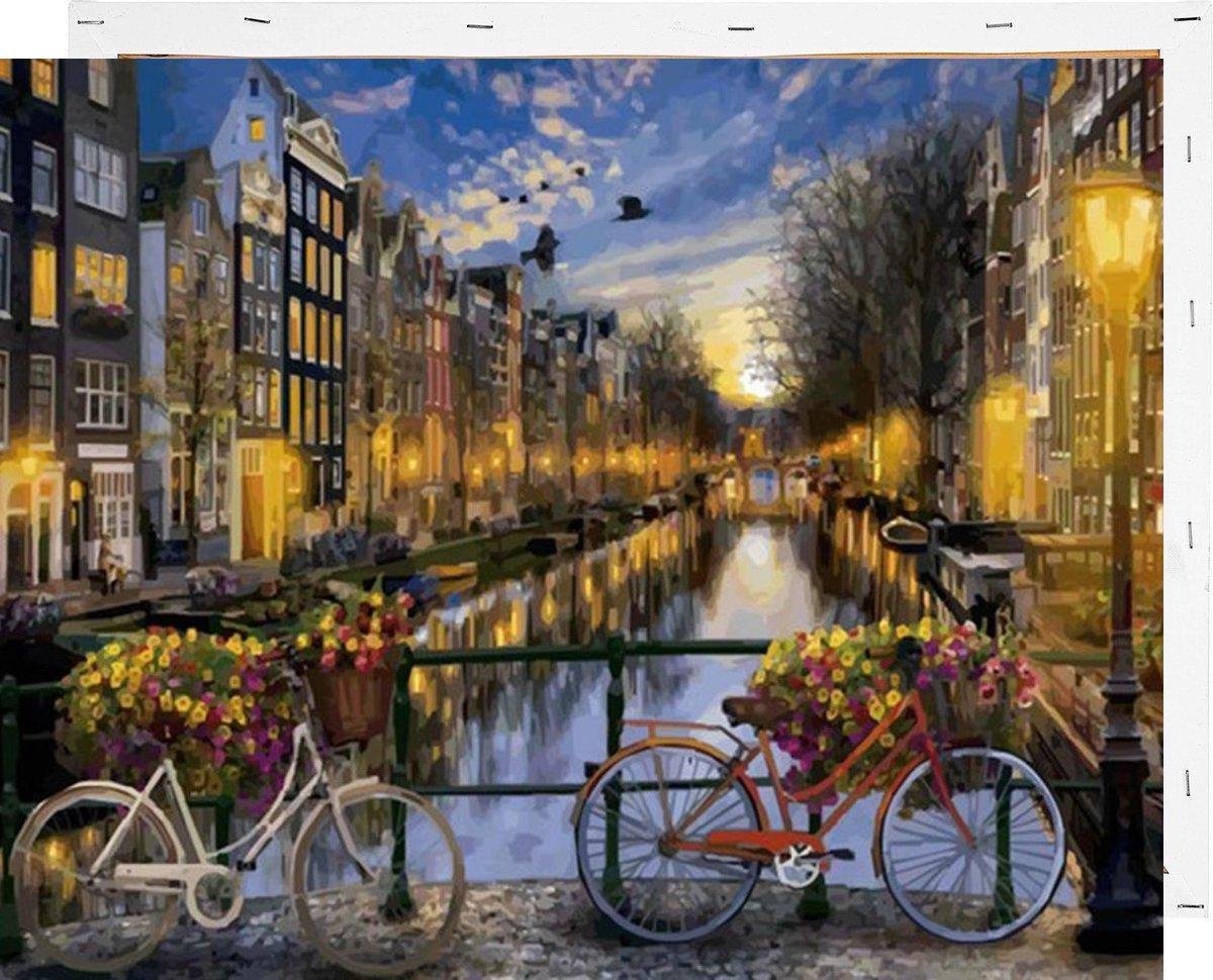 Schilderen op Nummer Fiets Grachten 40x50 met Frame Volwassenen & Kinderen - Kleuren op Nummer - Paint by Number - Hobbypainting.nl®