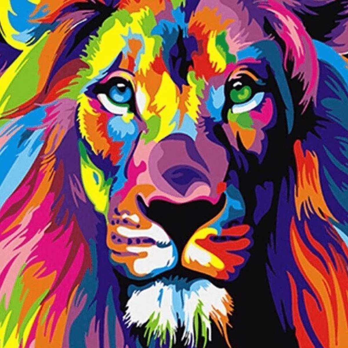 Schilderen op Nummer Gekleurde Leeuw - 60x75cm - Exclusief Lijst (36 kleurtjes)
