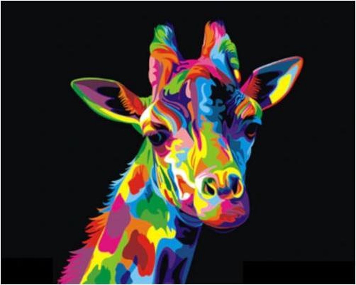 Schilderen op nummer is dé manier om even rustig te ontspannen. Met dit schildersdoek van een kleurrijke Giraffe schilder je een ontzettend leuk stuk dat je bijvoorbeeld aan de muur kunt hangen. Moeilijkheidsgraad: 2/5. Zo werkt het Strijk eventueel de achterkant van het canvasdoek op een lage stand. Leg een theedoek ertussen voor extra bescherming. Elk vakje op het doek is genummerd. Elk nummer komt overeen met een nummer op de verfpotjes. Kies een nummer waarmee je wilt beginnen. Schilder de vakjes één voor één met de juiste kleur. Zodra je klaar bent (dan kan even duren) kun je het doek inlijsten of opspannen aan een houten frame en aan de muur hangen! Er is geen specifieke volgorde die je moet volgen om deze tekening af te kunnen maken. Dus wees creatief! Zet vooral je favoriete muziek aan en pak een kop thee/bakje koffie. Verpakkingsinhoud - schilderen op nummer Giraffe Kleurrijk Instructies Een set met 3 kwasten Genummerd canvasdoek Genummerde potjes acrylverf Bestel het