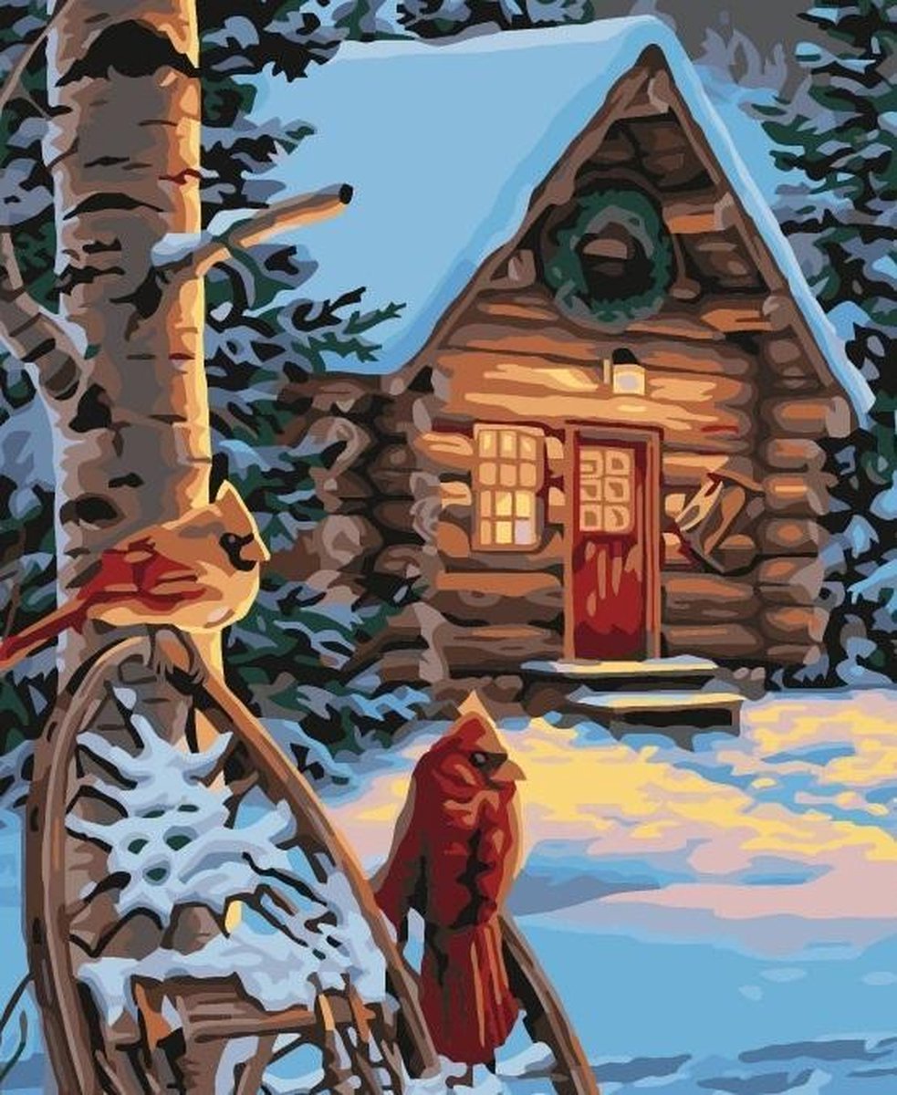 Wizardi paint by numbers HUTJE OP DE PISTE, Afmeting 40 x 50 cm. OPGESPANNEN CANVAS OP HOUT. Penselen en voldoende acrylverf. Vernis en instructies in het NEDERLANDS