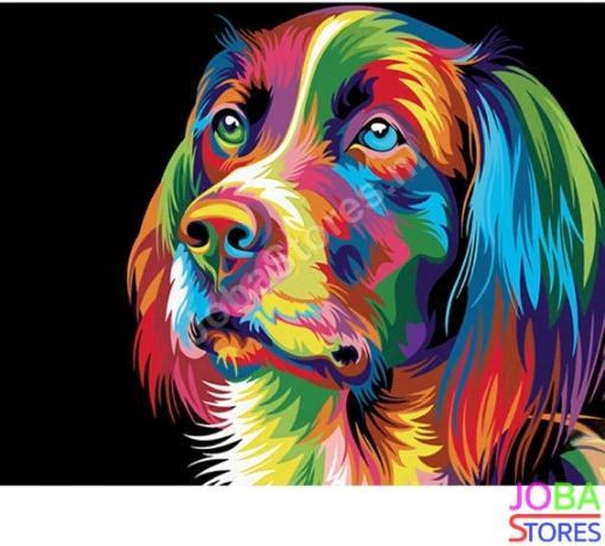 Schilderen op nummer "JobaStores®" Gekleurde Hond 40x50cm