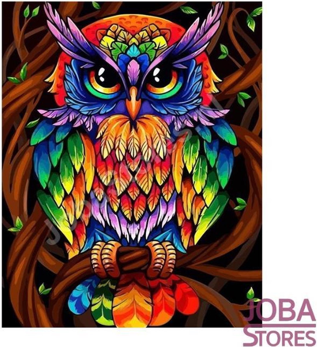 Schilderen op nummer "JobaStores®" Gekleurde Uil 40x50cm