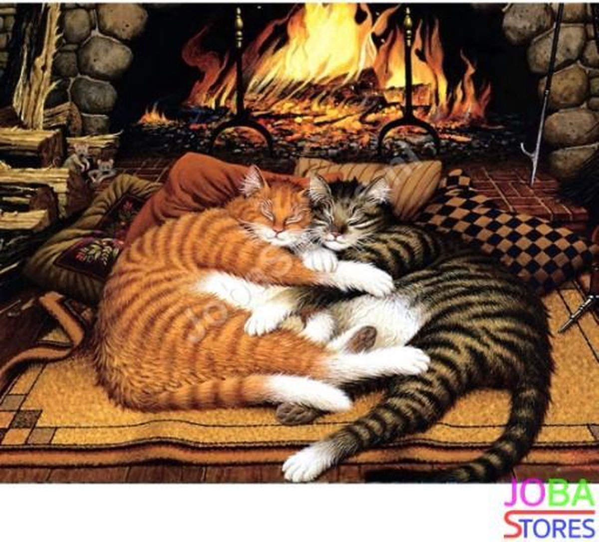 Schilderen op nummer "JobaStores®" Katten bij haard 40x50cm