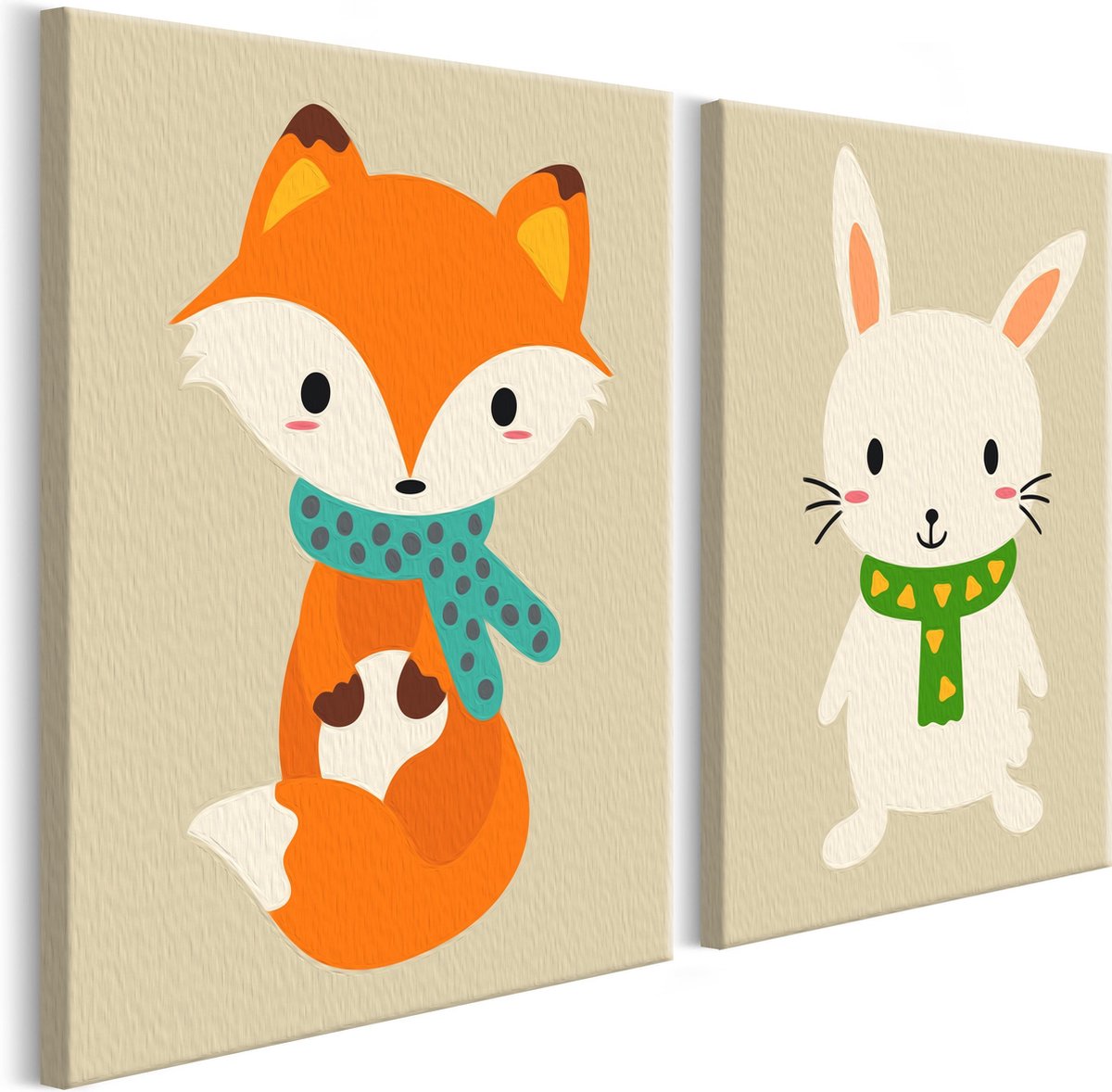 Ontwaak uw creativiteit Als u wilt dat uw kind zijn vrije tijd op een creatieve manier doorbrengt door zijn manuele vaardigheden en zijn talent als kleine artiest te ontwikkelen, dan hebben wij iets voor u! Schilderkit voor kinderen Fox & Bunny. Als uw kind graag wil tekenen of kleuren zal hij of zij onze schilderijenset Fox & Bunny zeer op prijs stellen. Het schilderij op zich is een ideaal cadeau-idee om de kamer van het kind te versieren. De schattige kleine dieren en de sprokkjesfiguren wachten op de penseelstreek. Voor kinderen van 7 tot 9 jaar presenteren wij een complete schilderijenset wat vermaakt en ontwikkelt tegelijkertijd. De set bevat: Schemapatroon met gekleurde velden - om uw kind te helpen schilderen Professionele borstel Een set acrylverf in containers, speciaal geselecteerd op het door u gekozen patroon Diagram patroon met gekleurde velden - om uw kind te helpen om te schilderen Het heilzame effect van schilderen Weet u dat schilderen een heilzaam effect heeft op