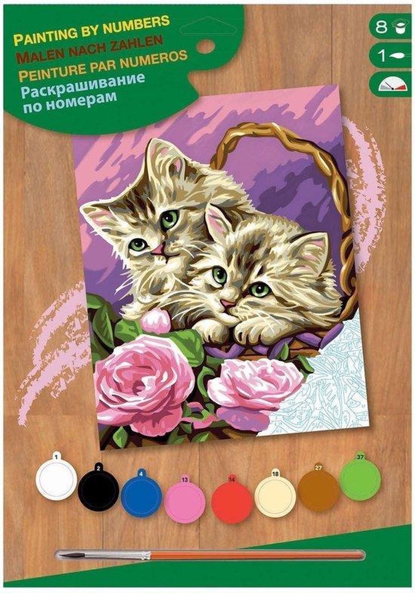 Schilderen Op Nummer Kitten. Afmeting 30x24 cm. Met 1 schilderpaneel, 8 kleuren verf en 1 penseel.