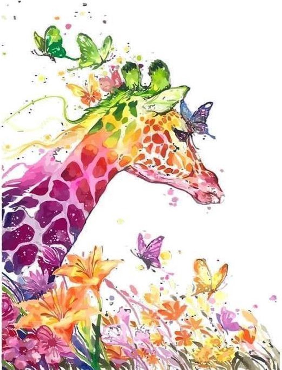 Schilderen op Nummer Kleurrijke Giraf - 40x50cm - Exclusief Lijst (24 kleurtjes)