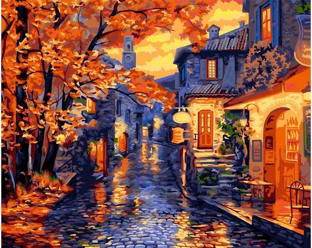 Wizardi Paint-By-Numbers Afmeting : 40 x 50 cm Opgespannen canvas op board Penselen en voldoende acryl verf Vernis en instructie (engels)