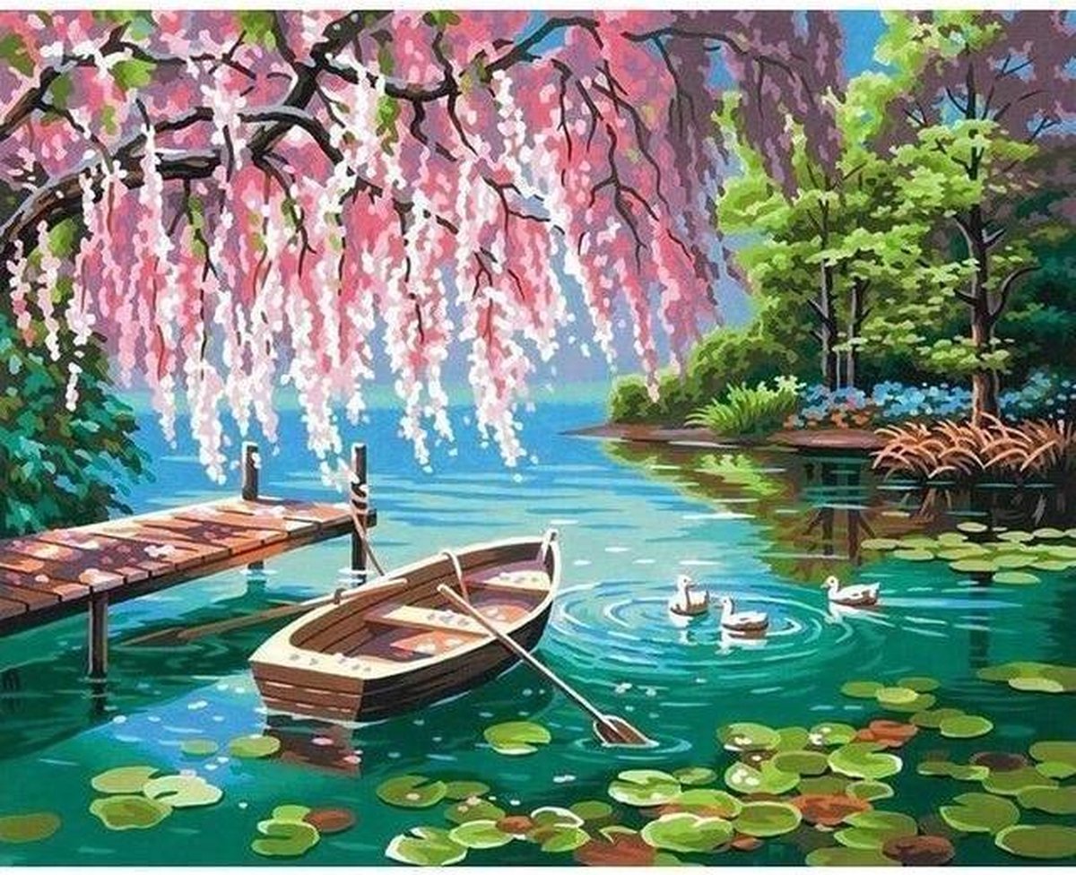 Schilderen op Nummer Landschap Water en Boot - 40x50cm - Op Lijst Gemonteerd (24 kleurtjes)