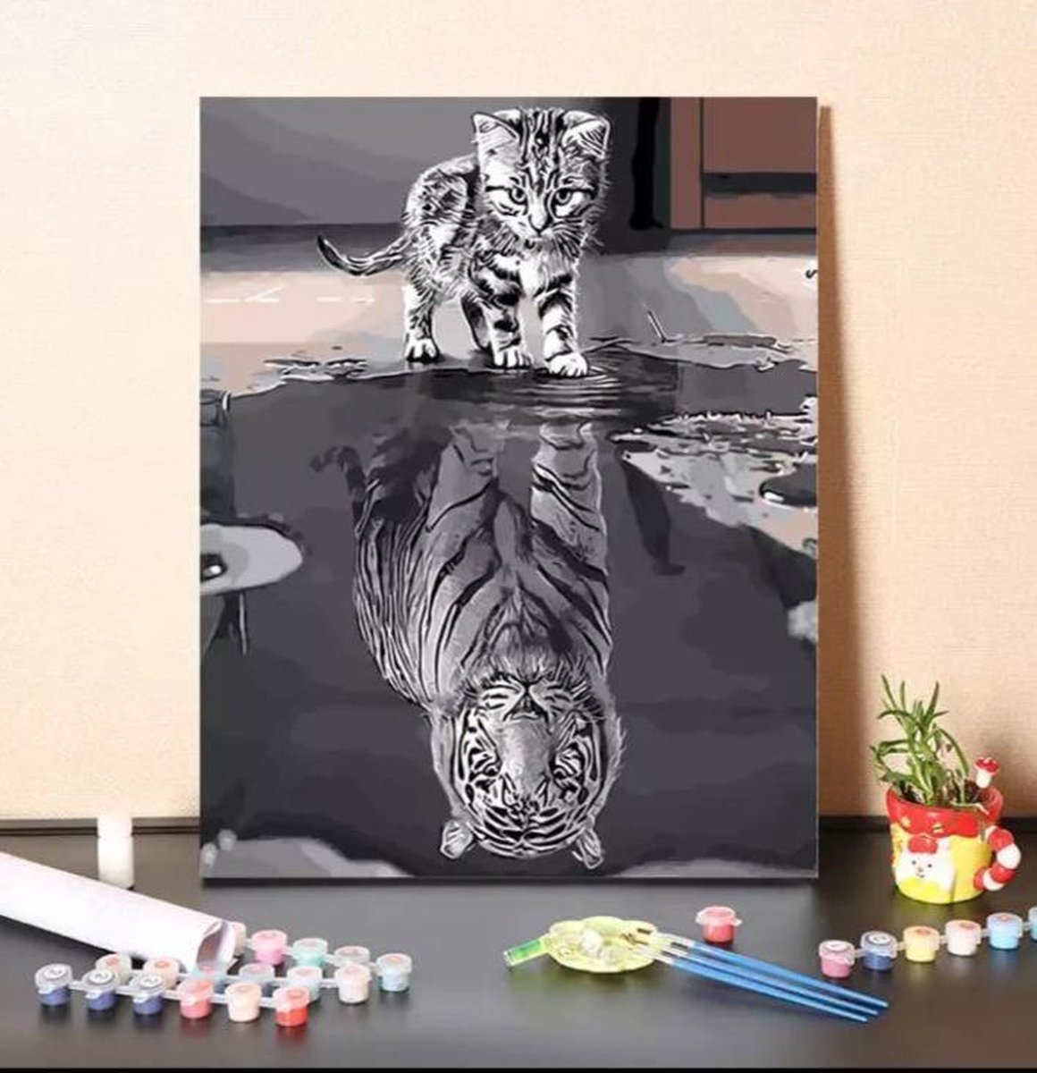 Schilderen op Nummer Mini Tijger - 50x65cm - Op Lijst Gemonteerd (36 kleurtjes)