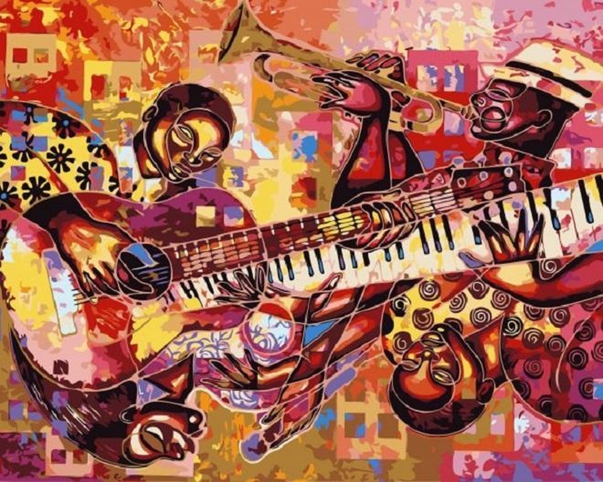 PAINT BY NUMBER MUZIEK 50 x 40 cm MS7205 Schilderen op nummer pakket Canvas gespannen op hout. Verpakt in leuke kadodoos. Inclusief duidelijke gebruiksaanwijzing met fotos op de doos. Verf, kwastjes en voorbeeldblad.