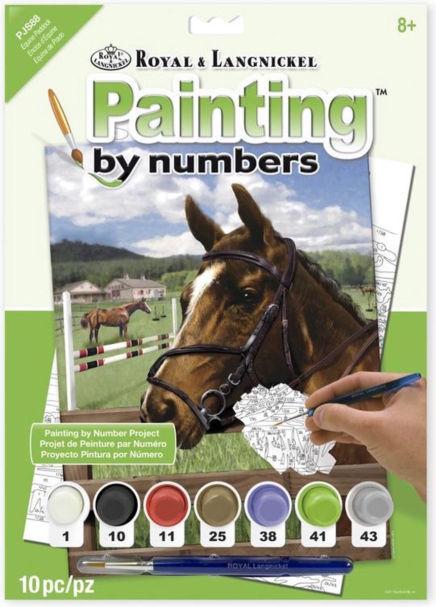 Formaat: 22.23x29.85cm Kit bevat: 7 kleuren verf 1 voorbedrukte canvasboard 1 voorbedrukte oefensheet 1 penseel instructie (Engels+Spaans+Frans)