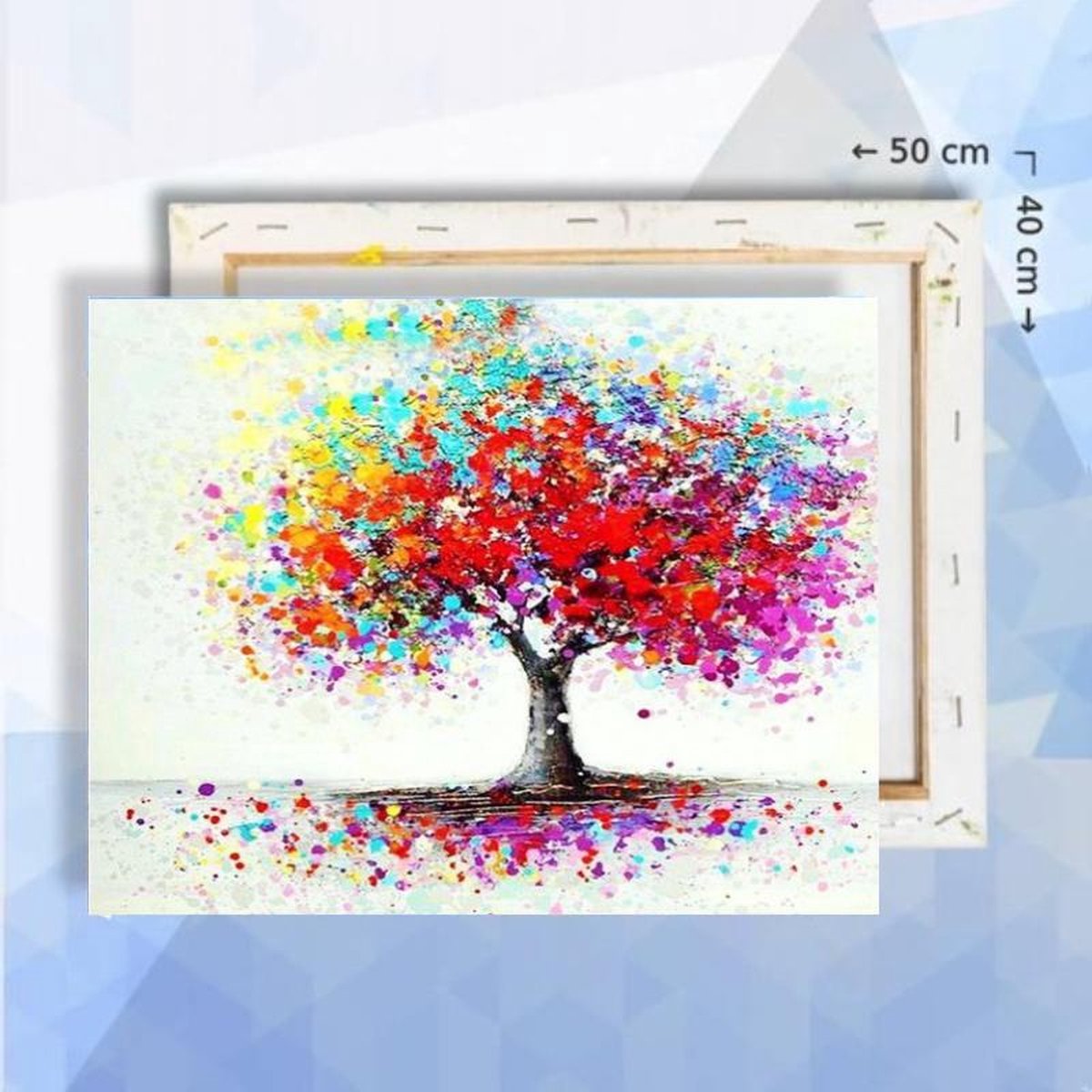 Schilderen op nummer pakket Boom van Regenboog Verf - 50 x 40 cm - met frame