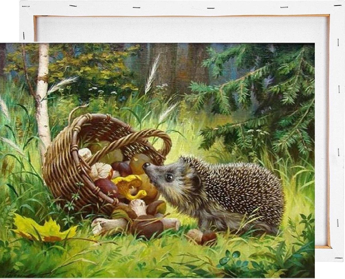 Schilderen op nummer pakket Egel in het bos - 40 x 50 cm - met frame