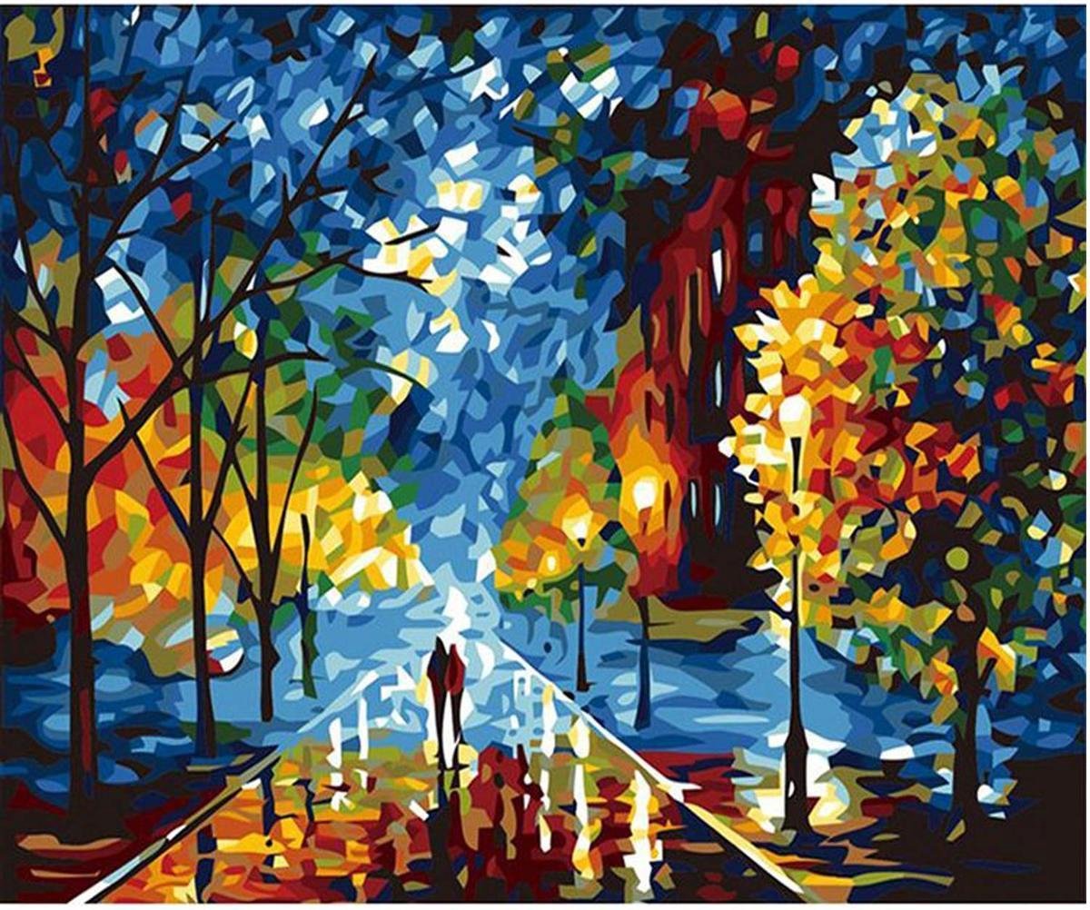 Schilderen op nummer pakket lichtjes in het park - 40 x 50 cm - met frame