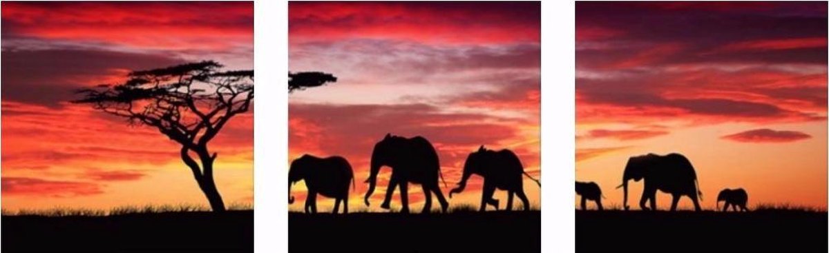 Schilderen op nummer pakket olifant schaduw drieluik - drie keer 40 x 50 cm - met frame
