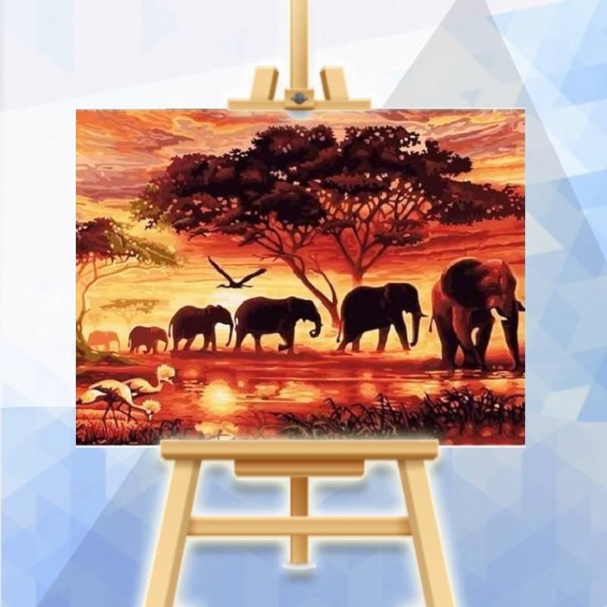 Schilderen op nummer pakket Olifanten bij zonsopkomst - 40 x 50 cm