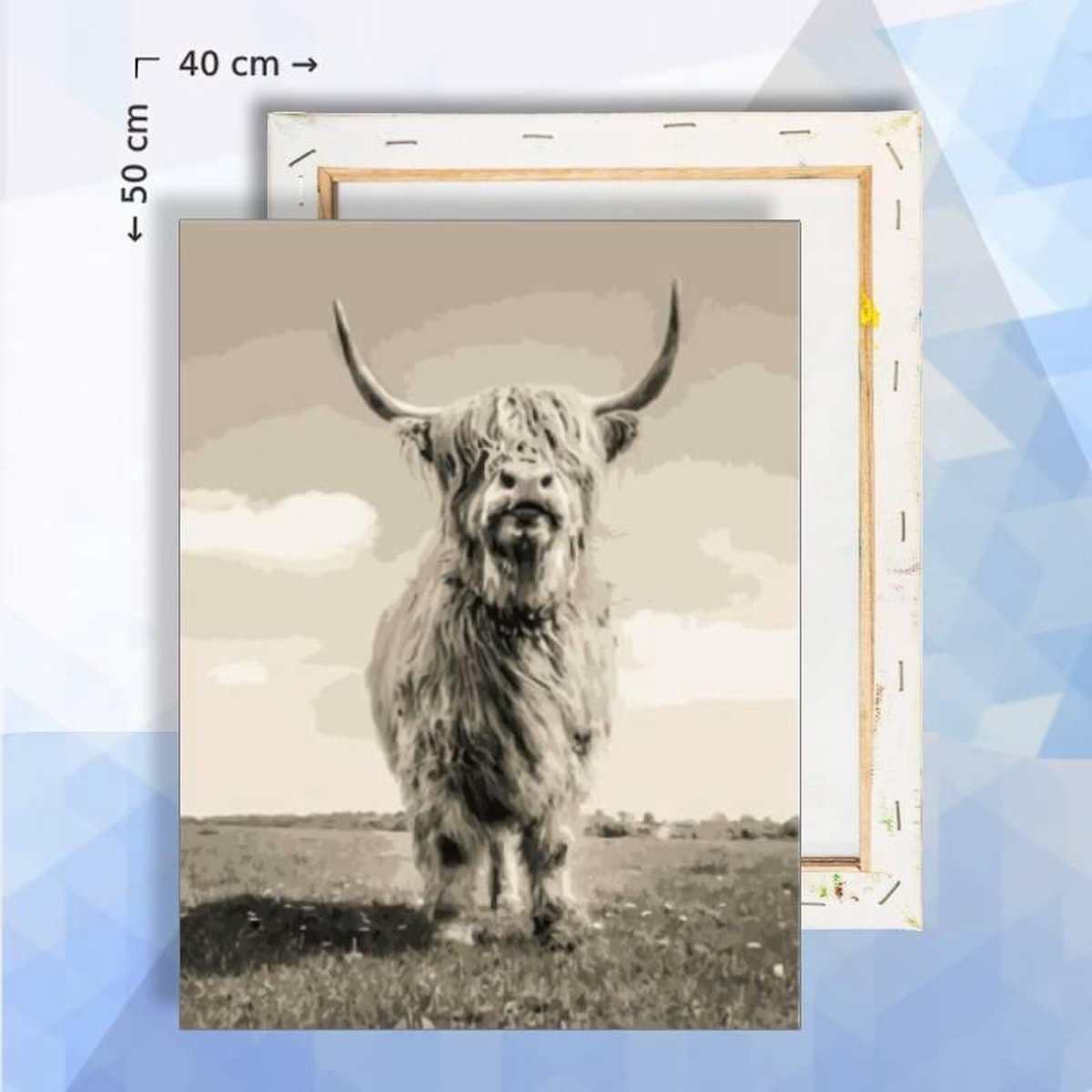 Schilderen op nummer pakket Schotse hooglander in weide - 40 x 50 cm - met frame