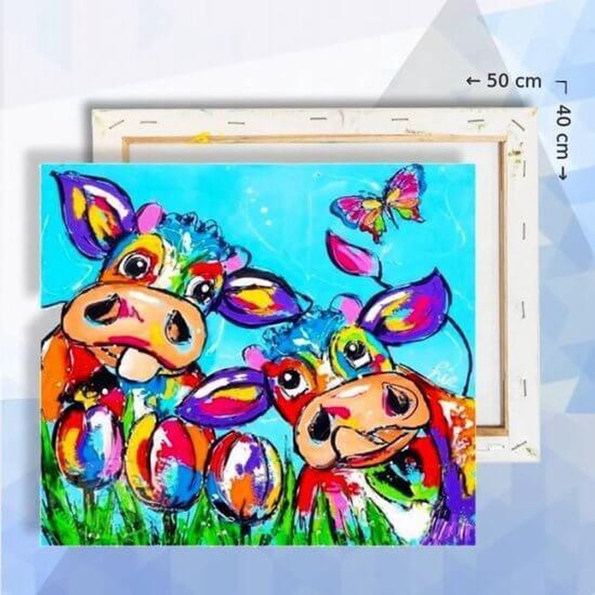 Schilderen op nummer pakket vrolijke koeien 40 x 50 cm - met frame