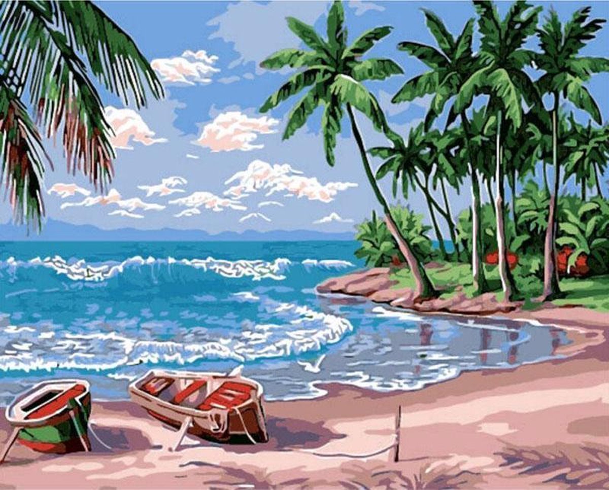 Schilderen op Nummer Palm Strand 40x50 Volwassenen & Kinderen - Kleuren op Nummer - Paint by Number - Hobbypainting.nl®