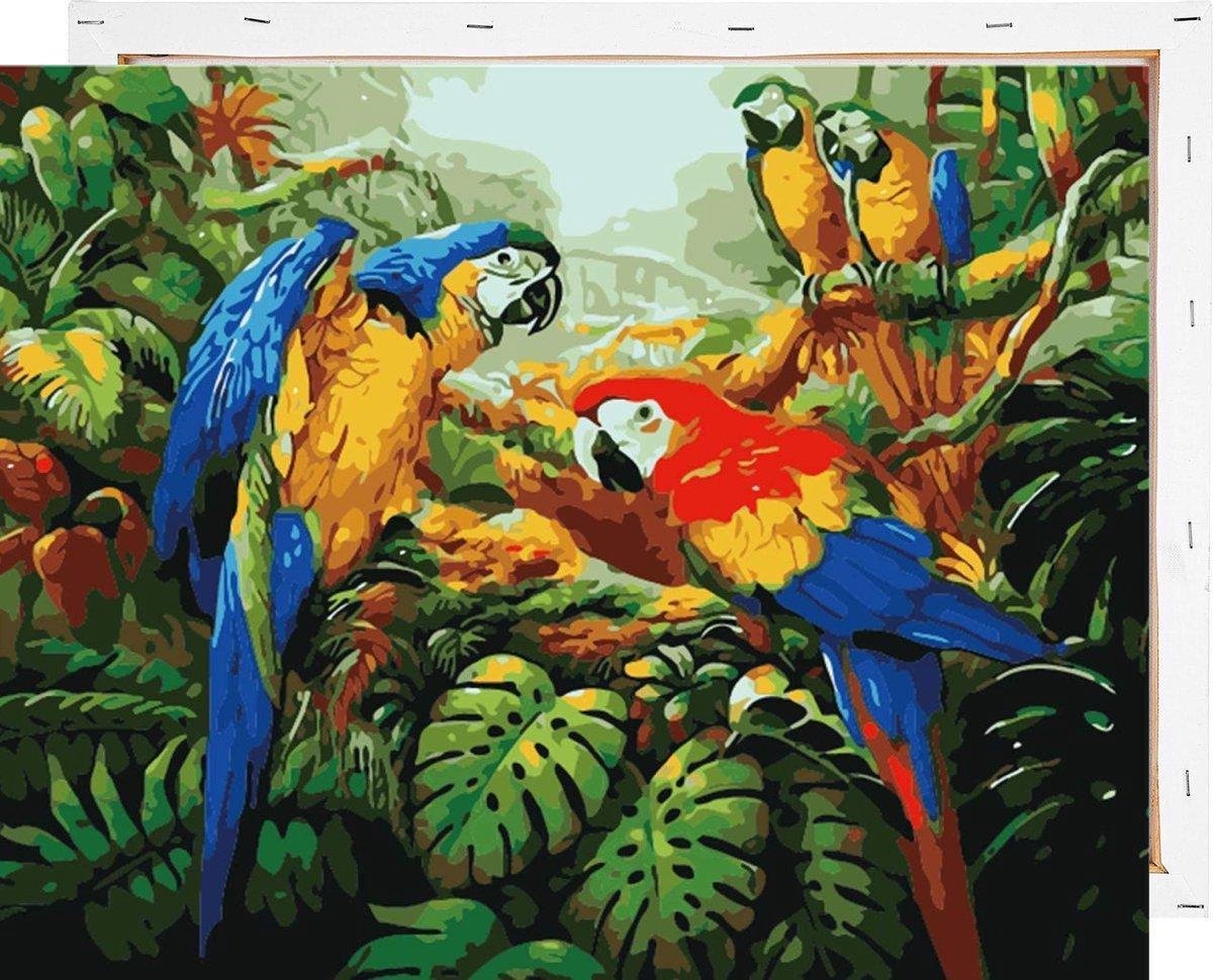 Schilderen op Nummer Papegaai 40x50 met Frame Volwassenen & Kinderen - Kleuren op Nummer - Paint by Number - Hobbypainting.nl®
