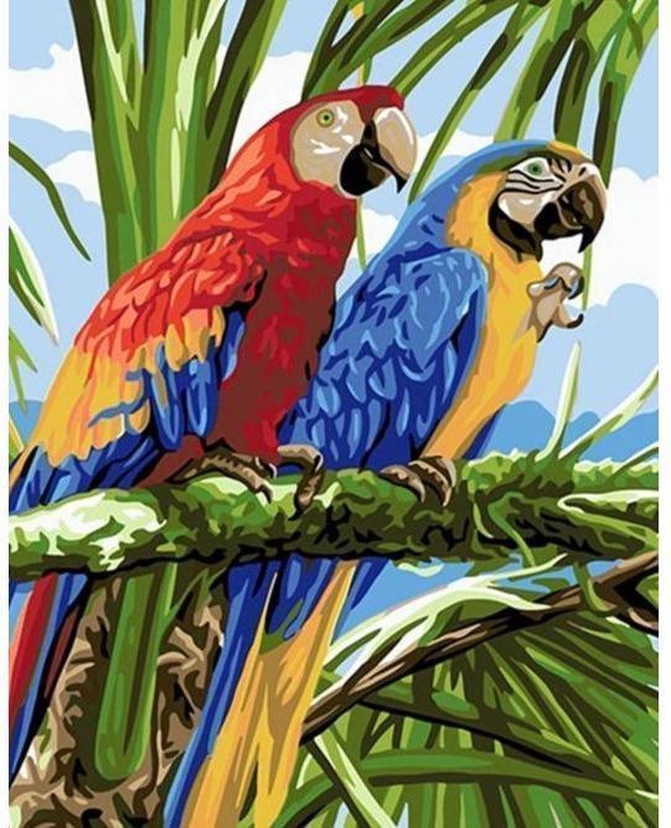 Schilderen op Nummer Papegaai - 40x50cm - Exclusief Lijst (24 kleurtjes)