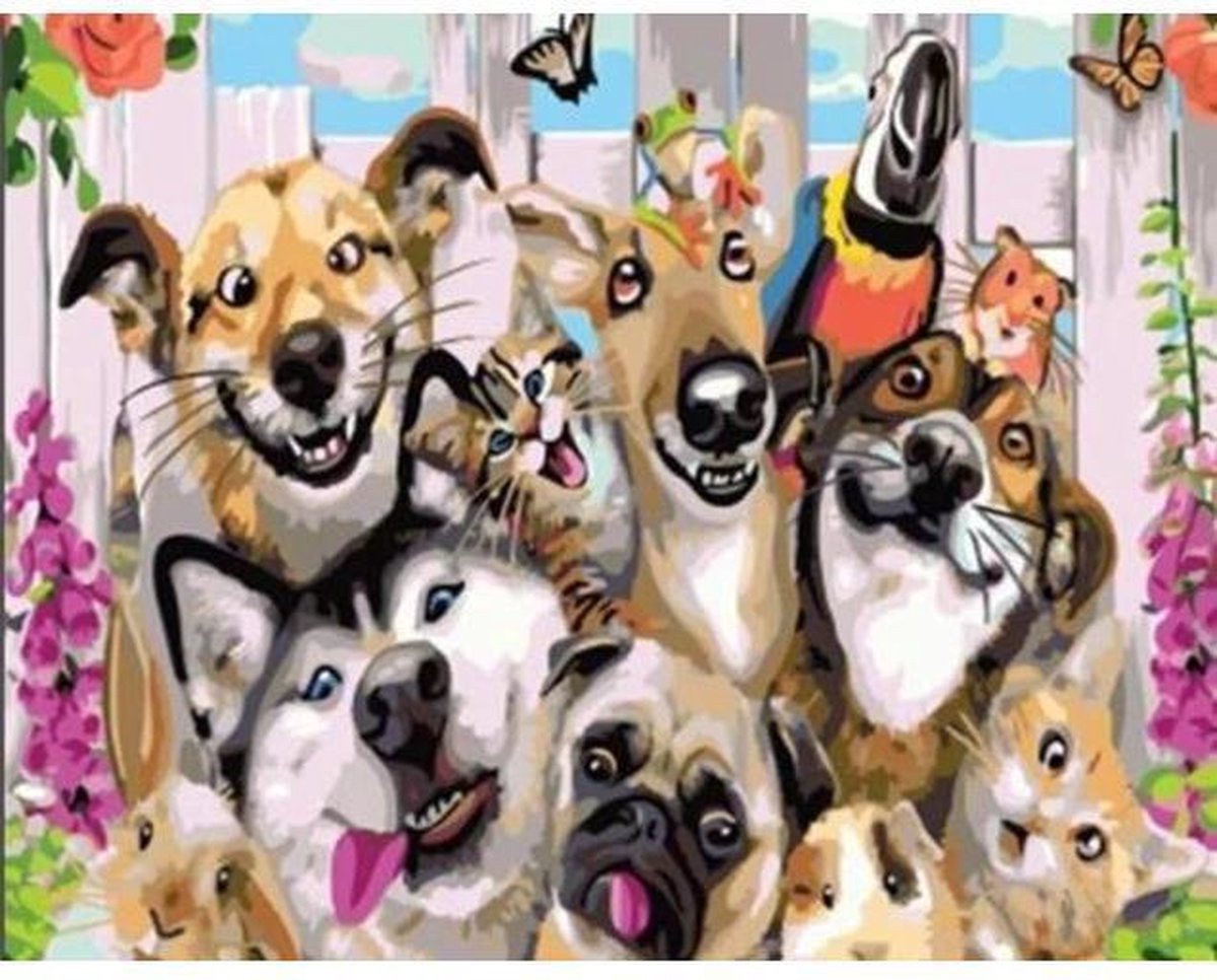 Schilderen op Nummer Selfie Honden - 40x50cm - Exclusief Lijst (24 kleurtjes)