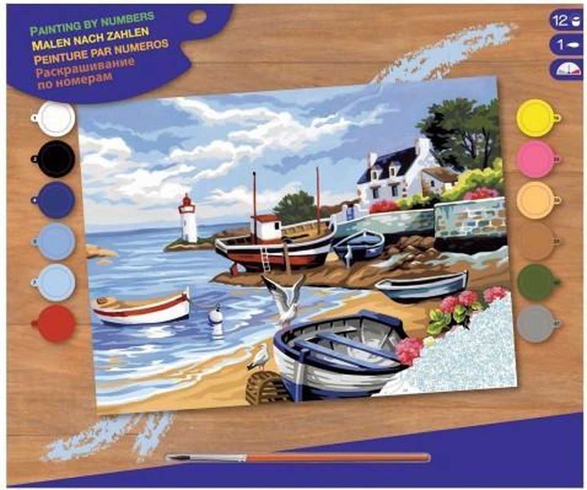 Schilderen op nummer - Sequin Art • Senior painting by numbers fishing village