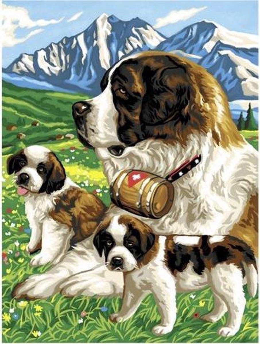 Met Schilderen op Nummer maak je met een beetje hulp de mooiste schilderijen. Volg de aanwijzingen op en geef alle vlakken de juiste kleur.Wanneer je klaar bent heb je een schilderij van een Sint Bernard hond met pups.